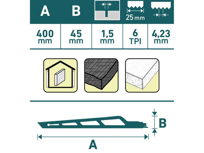 Dotaz ke zboží: Extol Industrial plátok na rezanie izolačných hmôt do chvostovej píly, 400mm, hrúbka 1,5mm 8706310