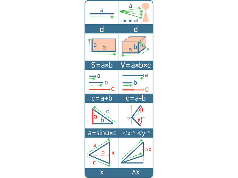 - meranie uhla výpočtom z referenčného bodu - sklon v horizontálnej i vertikálnej rovine