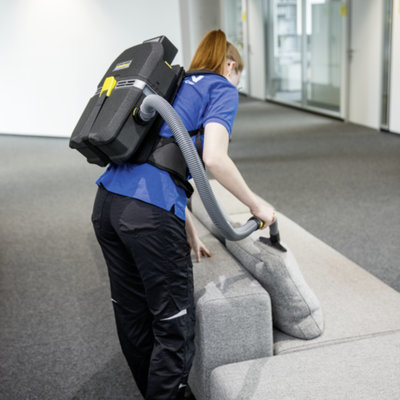 Náš ultraľahký, výkonný a na batérie napájaný batohový vysávač BVL 5/1 Bp Pack je prvý vysávač, ktorý vďaka inovatívnemu materiálu EPP váži iba < 4,6 kg (nosnosť na chrbte) a ktorého materiálové vlastnosti zároveň umožňujú mimoriadna robustnosť a odolnosť. Či už v kine, v lietadle, v autobusoch a vlakoch, pri upratovaní kancelárií alebo na schodoch, výkonný batohový vysávač s objemom nádoby 5 litrov naplno využíva svoje prednosti pri upratovaní v tých najužších priestoroch. Výkonná batéria Kärcher Battery Power+ tu zaisťuje dlhé doby chodu a výkon 500 wattov z odolného bezuhlíkového EC pohonu. Ergonomický nosný rám batohového vysávača zaručuje prácu bez únavy. Vďaka praktickému ovládaciemu panelu na bedrovom popruhu na ovládanie všetkých dôležitých prevádzkových a doplnkových funkcií možno BVL 5/1 Bp Pack ovládať bez námahy a mimoriadne užívateľsky prívetivým spôsobom. Štandardne je zahrnuté rôzne príslušenstvo – výkonný akumulátor Kärcher Battery Power+, príslušná rýchlonabíjačka a flísové filtračné vrecko odolné voči roztrhnutiu. Voliteľne je k dispozícii aj vysoko účinný filter HEPA-14.
