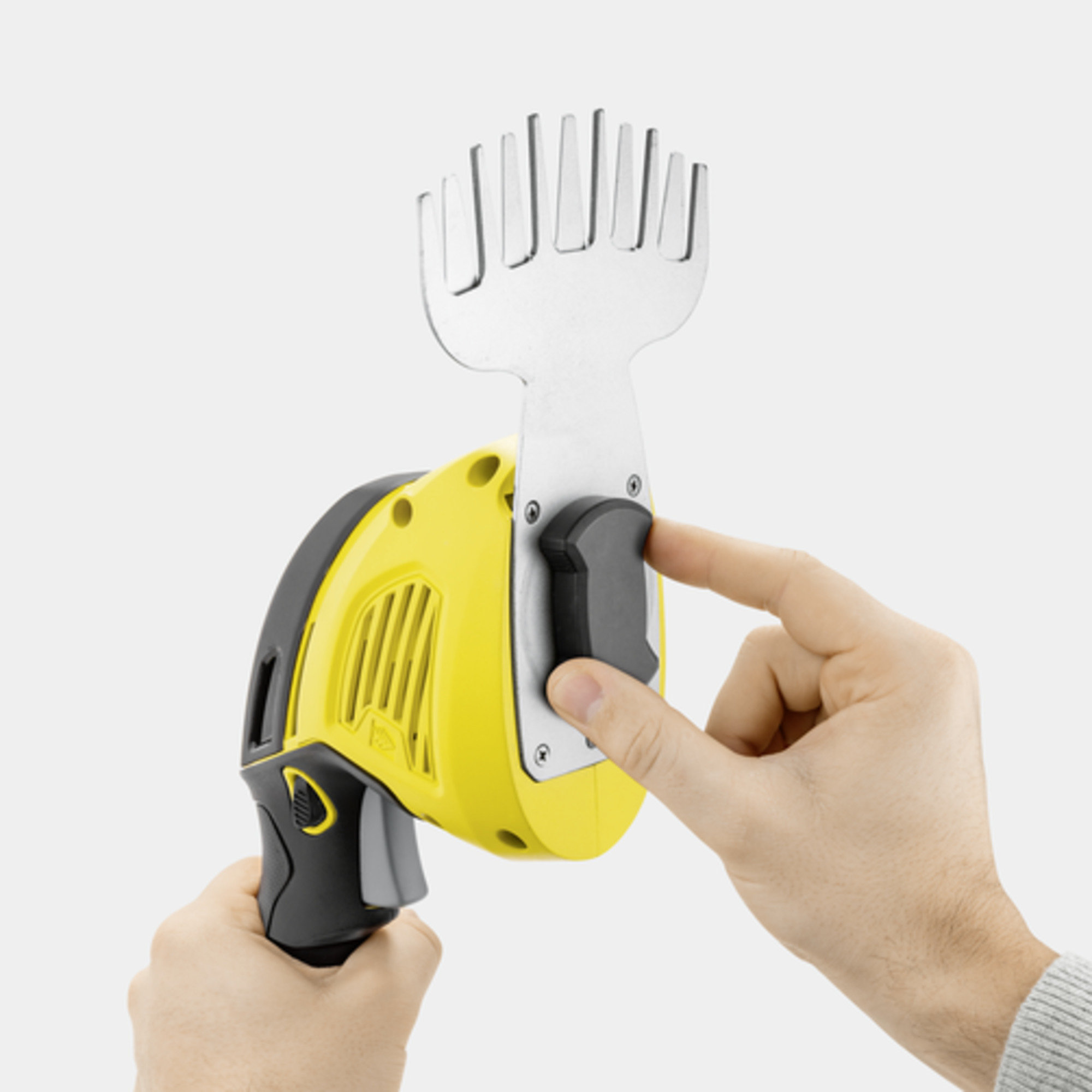 Presné obrysy potešia oko nejedného záhradkára, pretože záhrada tak pôsobí veľmi udržiavane. Avšak práve pri kameňoch, chodníkoch alebo pozdĺž terasy nie je možné pokosiť okraje dokonale. Presne tu prichádzajú do hry akumulátorové nožnice na trávu a kríky GSH 18-20 Battery. Ich 12 centimetrov široký nôž na trávu zabezpečí takú presnú úpravu okrajov trávnika, ako ešte nikdy predtým. Ich nízka hmotnosť a vysoký výkon akumulátora sú perfektné pre dlhšie pracovné intervaly a silný rez. Dokážu ešte viac - aj starostlivosť o kríky bude dokonalá - samozrejme, s vhodným nožom. Nôž na kríky s dĺžkou 20 cm s obojstrannými, diamantom brúsenými čepeľami je možné rýchlo pripevniť bez nástroja s pomocou skrutkového systému. Keď budú mať všetky krivé okraje znova rovnú líniu a konáre budú mať znova krásny tvar, potom je možné univerzálny prístroj 2 v 1 ľahko zavesiť do chodby alebo garáže pomocou závesného oka, integrovaného v ochrannom kryte noža.